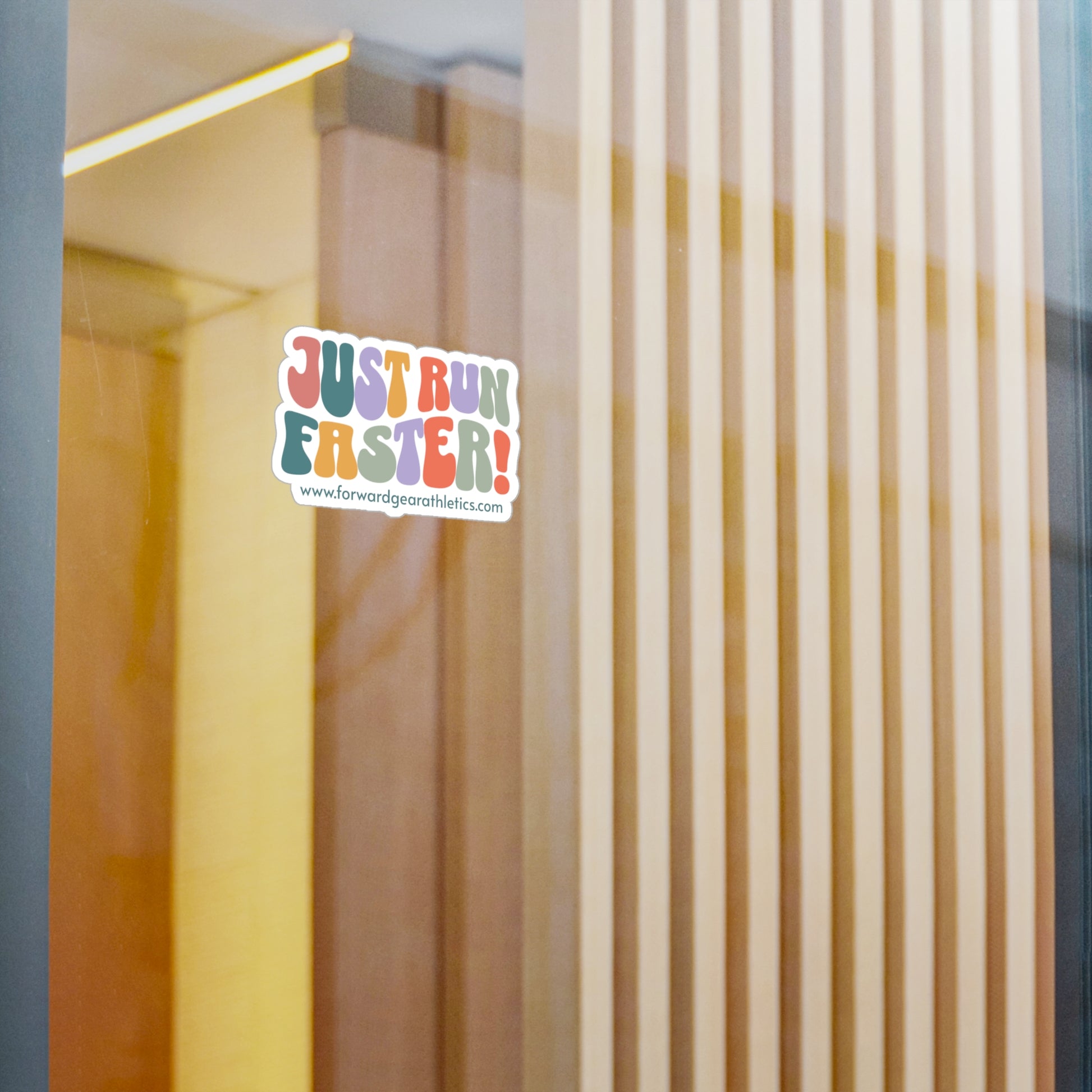 Bright, retro-style kiss-cut vinyl decals that bring playful energy to water bottles, laptops, windows, and gear. The colorful, bubbly lettering reads “JUST RUN FASTER!” in a 70s-inspired palette and sits on a satin white vinyl with a delicate 1/8" kiss-cut border. They cling firmly when you want them to, but peel away cleanly when you don’t — holding up to sun, splash, and scuffs for up to three years. Each sheet may contain multiple stickers and a small barcode on the backing; lightweight and cheerful, these decals add a dash of movement and motivation to everyday surfaces.